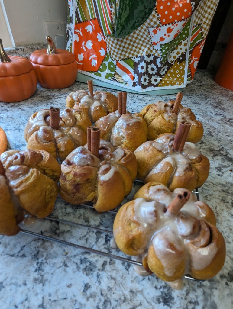 The most precious pumpkin shaped breakfast buns that I ever did see.